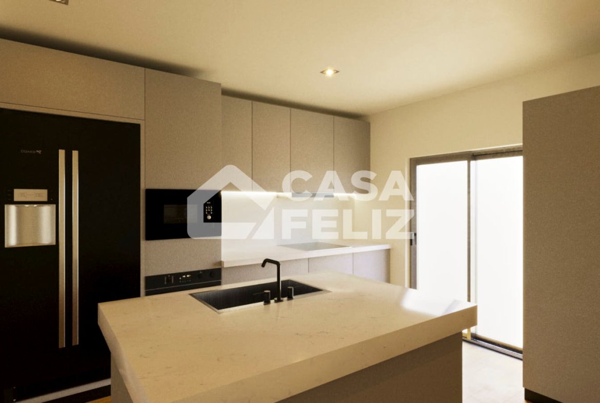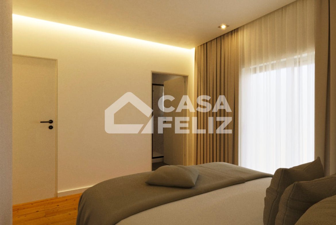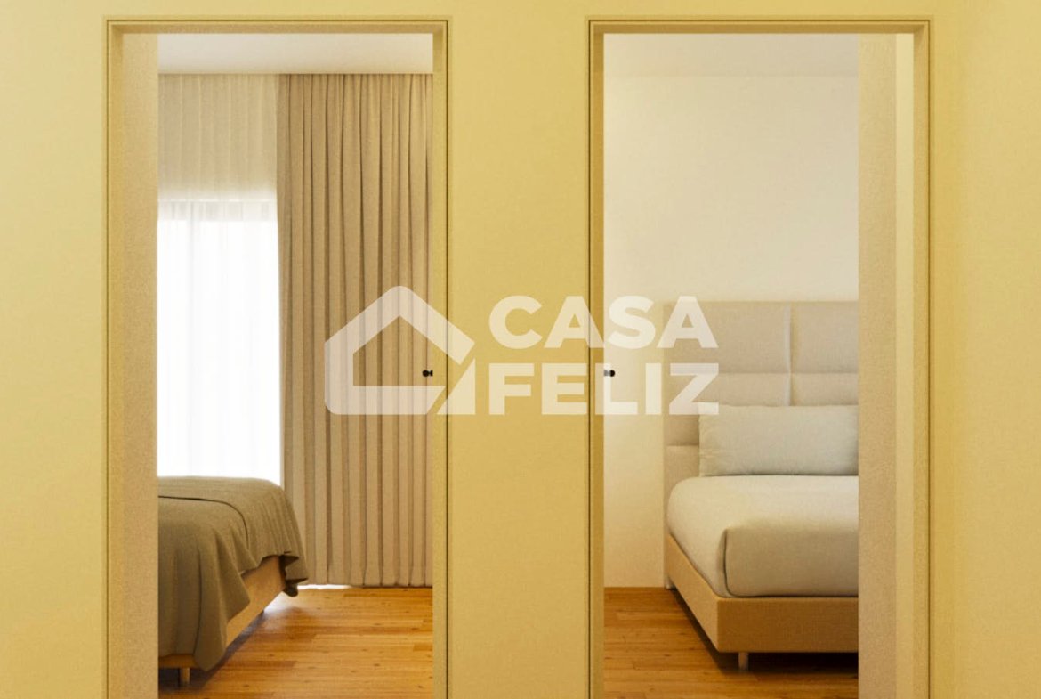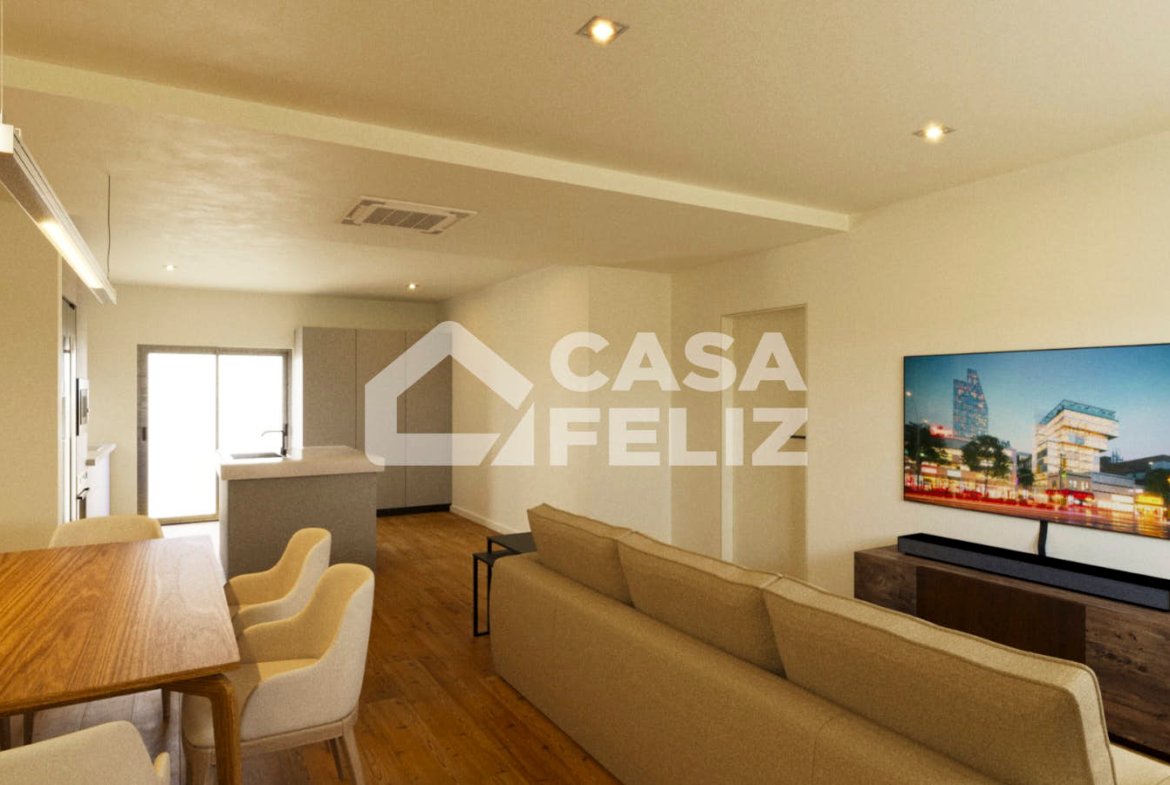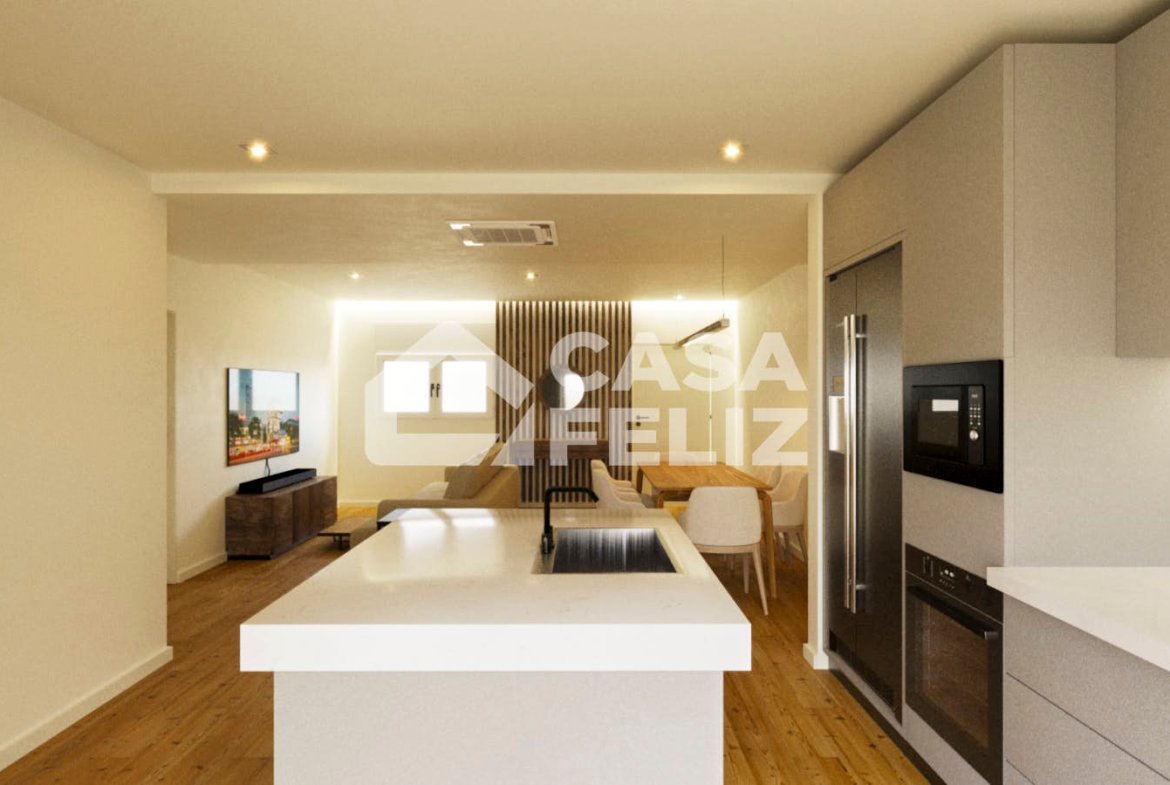 O imóvel destaca-se pela sua disposição funcional e moderna. À entrada, encontramos uma ampla sala e cozinha em open space, com acesso direto a uma varanda, ideal para momentos de lazer. A zona privada é composta por três quartos, sendo um deles suite, e dois com acesso à varanda, além de um WC completo de apoio.