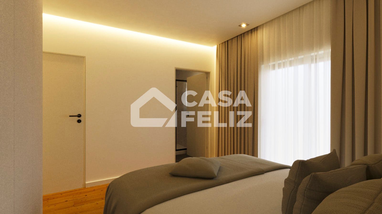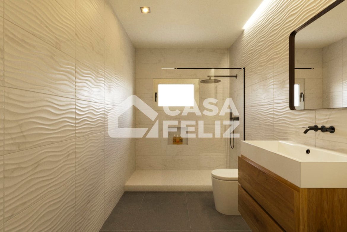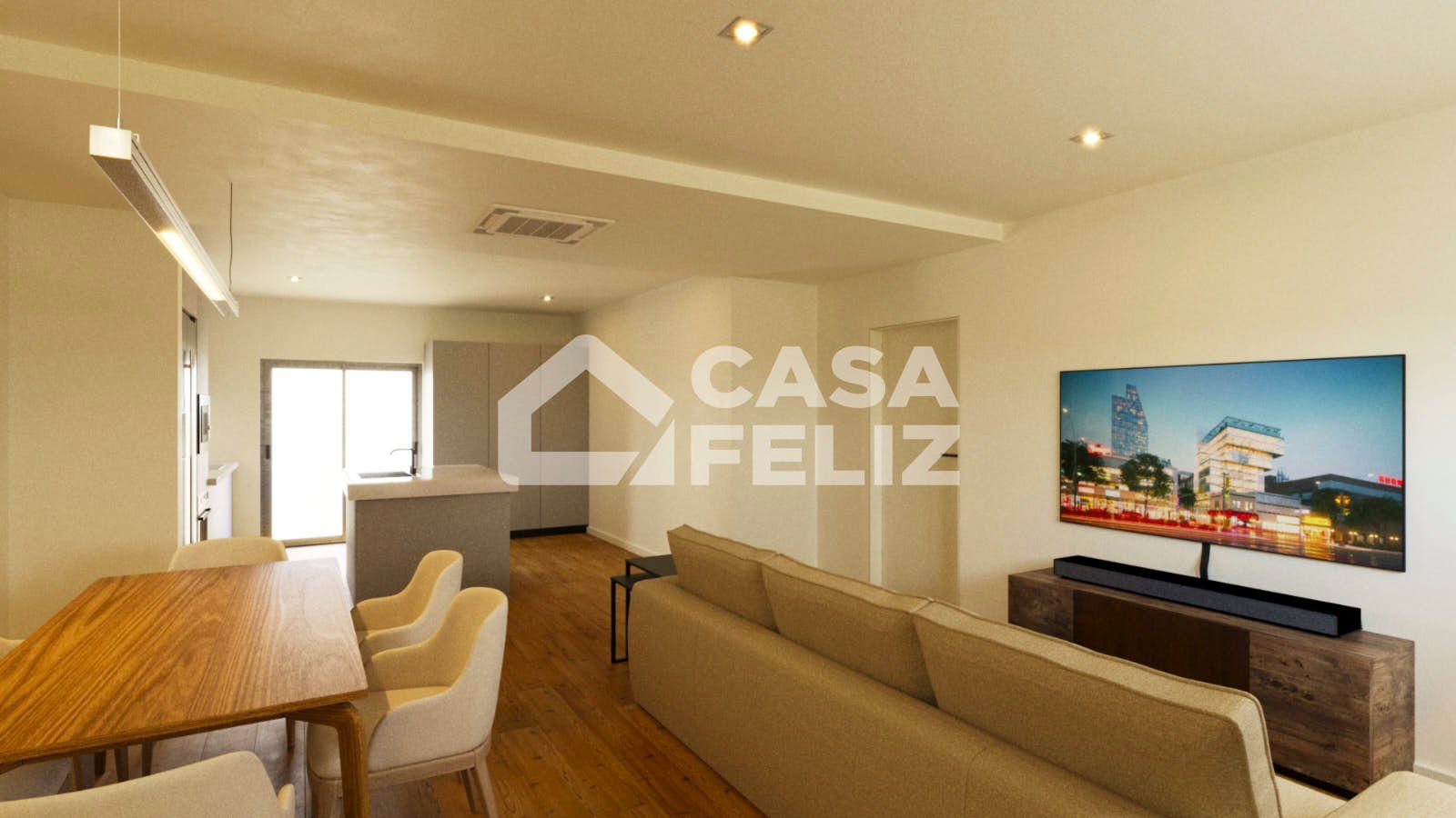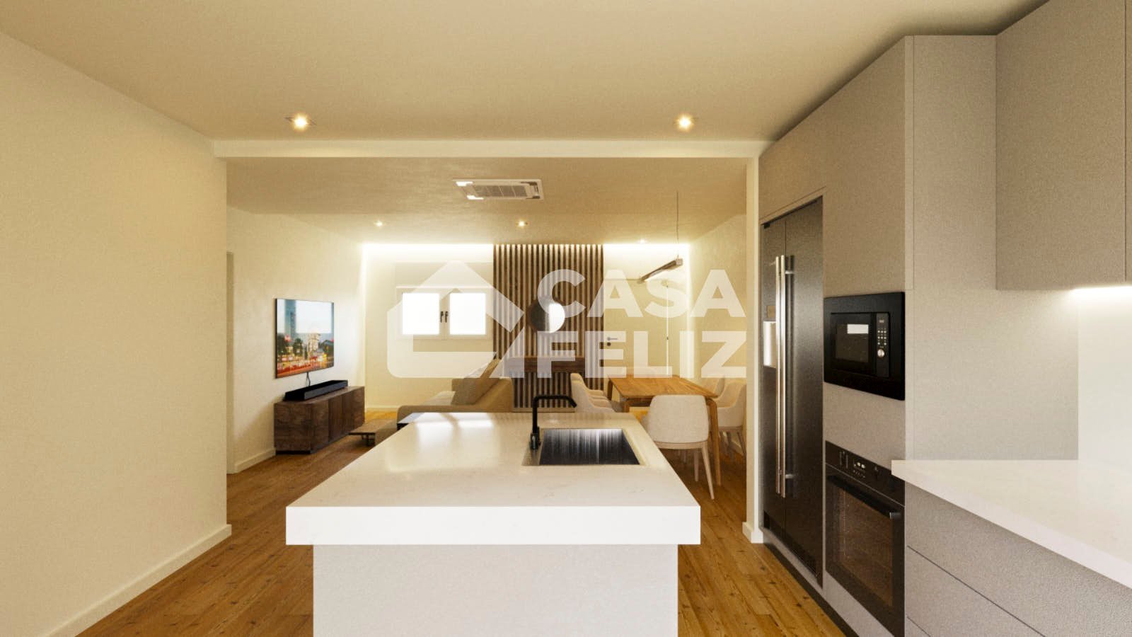 O imóvel destaca-se pela sua disposição funcional e moderna. À entrada, encontramos uma ampla sala e cozinha em open space, com acesso direto a uma varanda, ideal para momentos de lazer. A zona privada é composta por três quartos, sendo um deles suite, e dois com acesso à varanda, além de um WC completo de apoio.