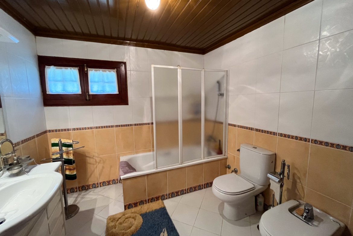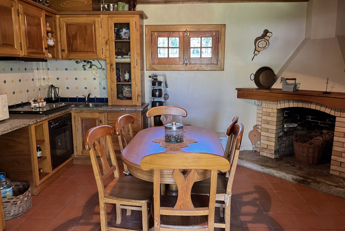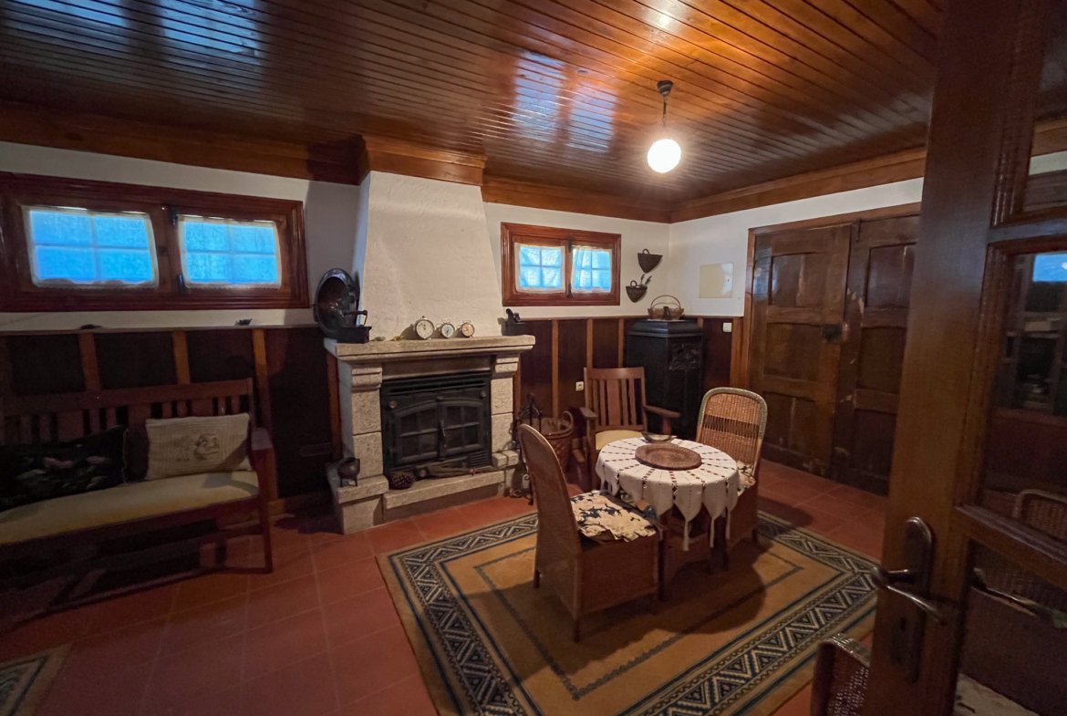 No rés-do-chão, encontra-se uma cozinha equipada, um wc completo e duas salas acolhedoras com recuperador de calor, perfeitas para momentos em família.