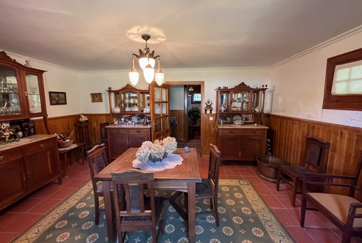 Esta propriedade única oferece um terreno generoso de cerca de 1900 m², repleto de árvores de fruto, ideal para quem aprecia a natureza e a tranquilidade do campo. A casa principal, com 250 m² de área útil, distribui-se por dois andares.