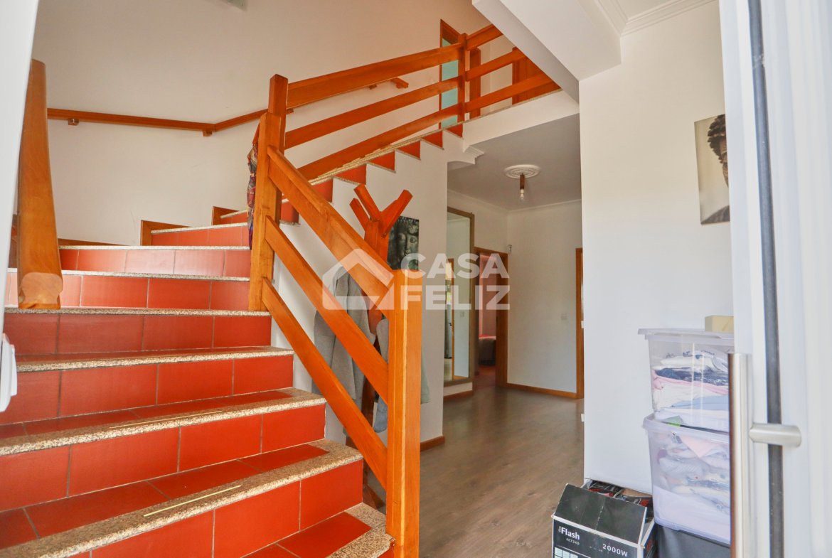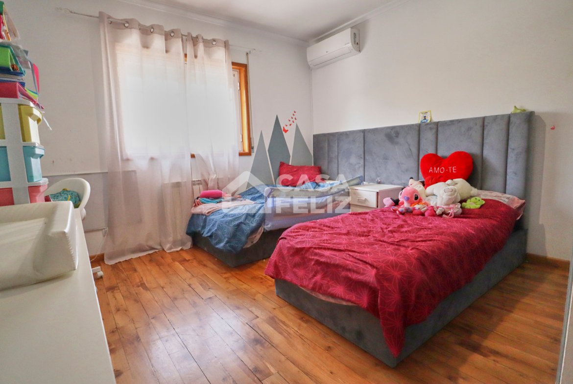 No primeiro piso, dois quartos amplos proporcionam privacidade e tranquilidade, acompanhados de um wc completo. Na cave um amplo espaço que pode ser transformado em garagem, além de uma lavandaria e mais dois quartos adicionais, ideal para receber visitas ou criar um escritório. A casa conta ainda com aquecimento central a lenha e ar condicionado, garantindo conforto em todas as estações.