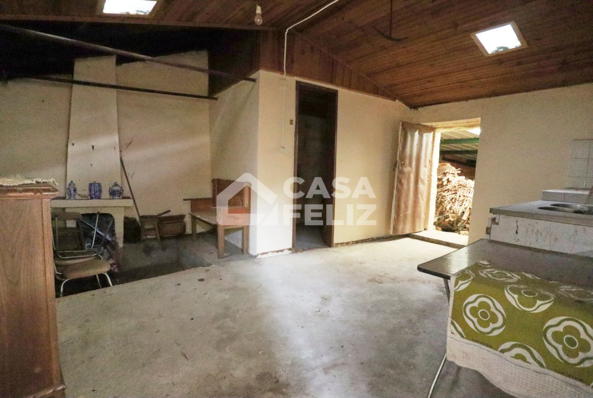 Esta moradia dispõe de dois quartos, uma casa de banho funcional, uma sala luminosa e uma cozinha que se conecta a uma despensa útil.