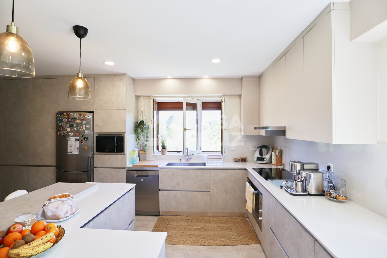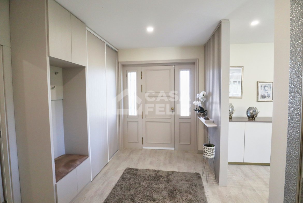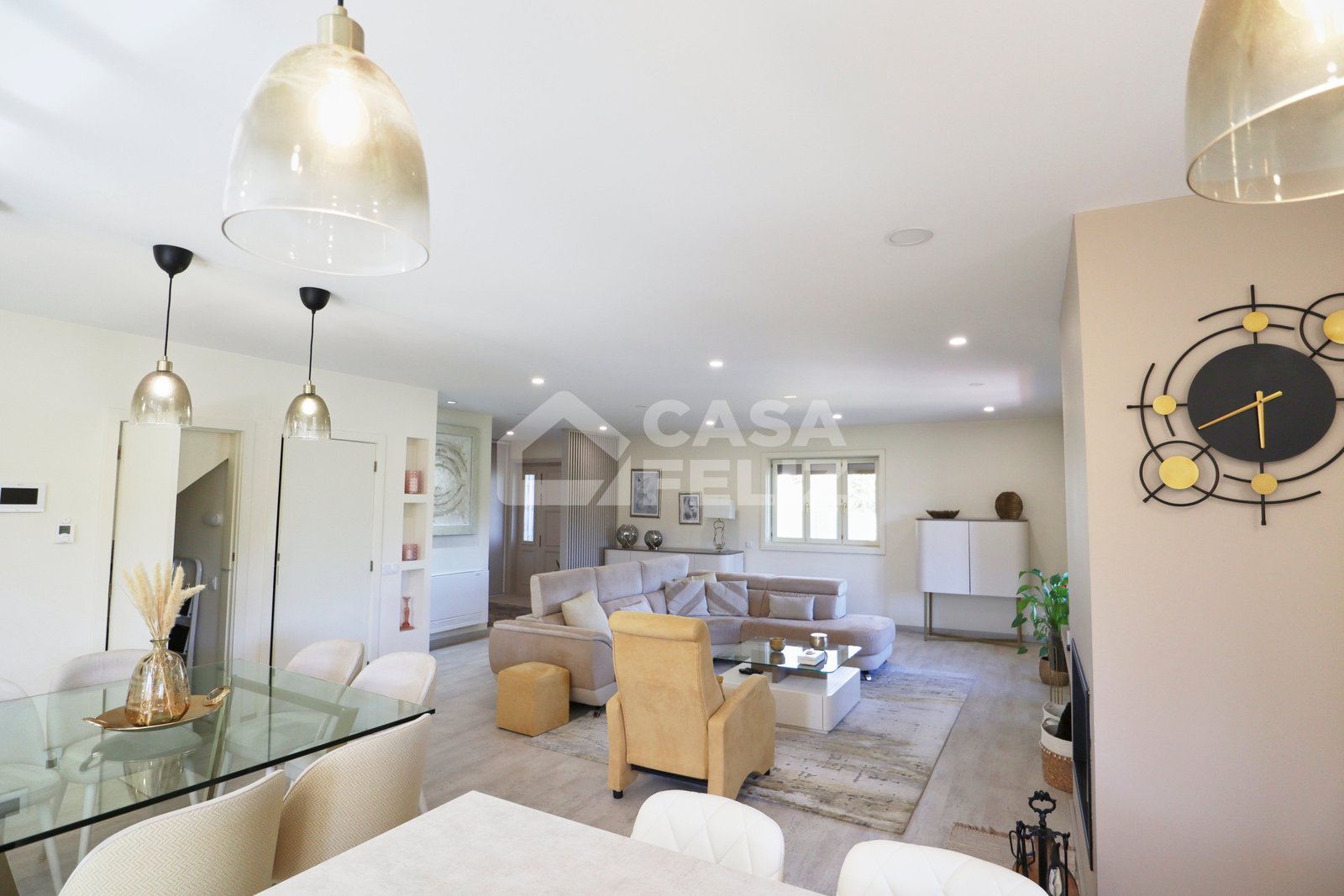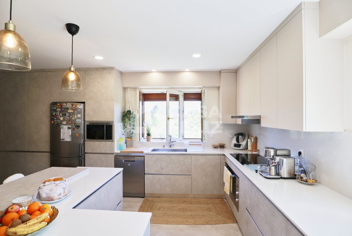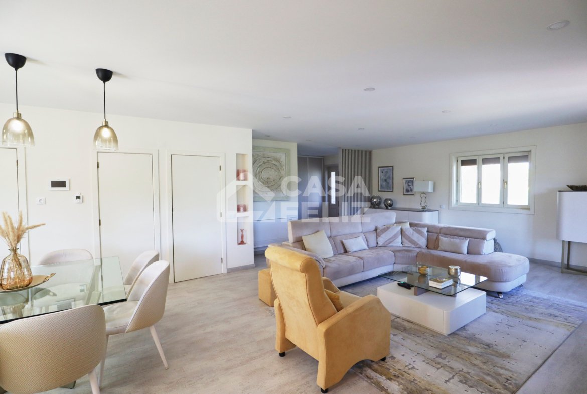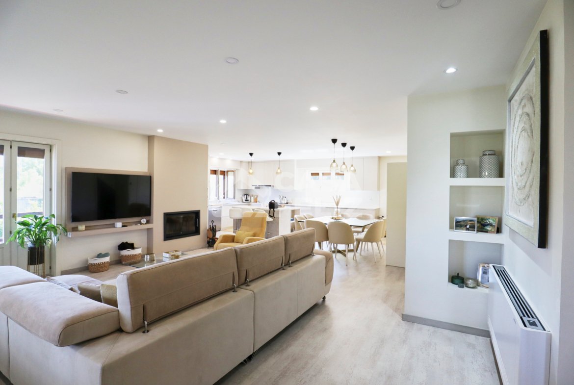 Ao entrar, encontra uma ampla sala em open-space, onde luz natural e decoração contemporânea encaixam na perfeição. A sala de estar comunica harmoniosamente com a zona de refeições e com uma cozinha totalmente equipada, moderna e prática, oferecendo o ambiente ideal para convívio.